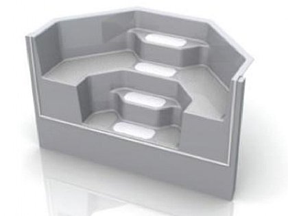 an den Montageort transportiert werden. Dort wird das Becken auf einer armierten Betonplatte aufgebaut,