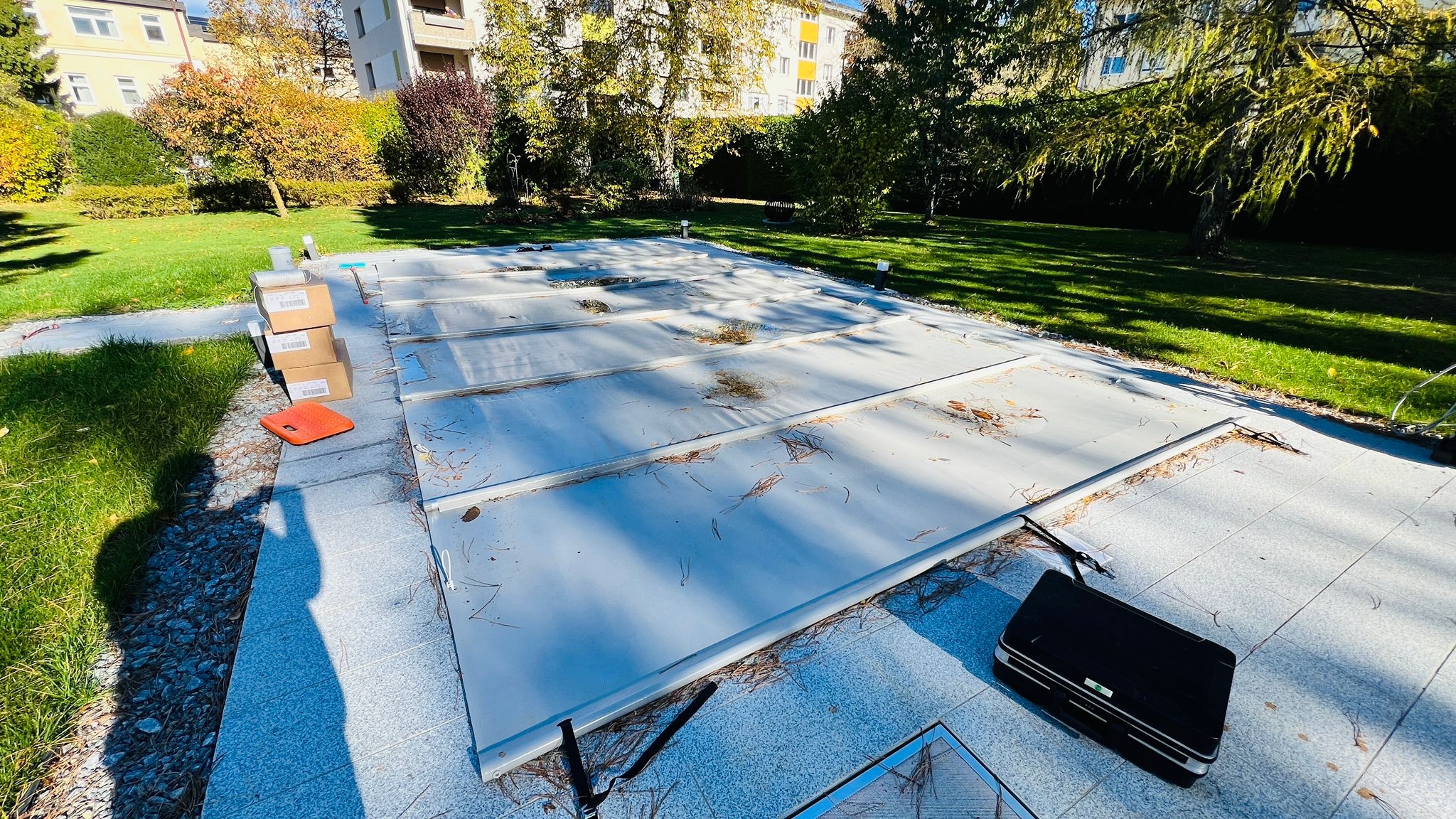 🔵 Gebrauchte Rollabdeckung in Hellgrau für Poolgröße 7,0 x 3,5 m (2 Jahre alt)