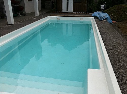 ❌ Wasserlinie sichtbar etwas unter dem Beckenrand
