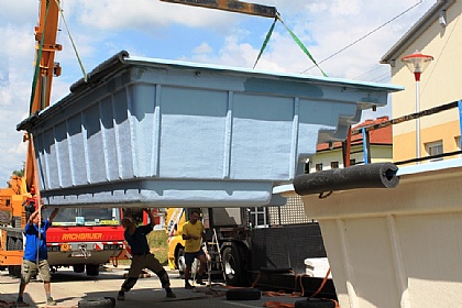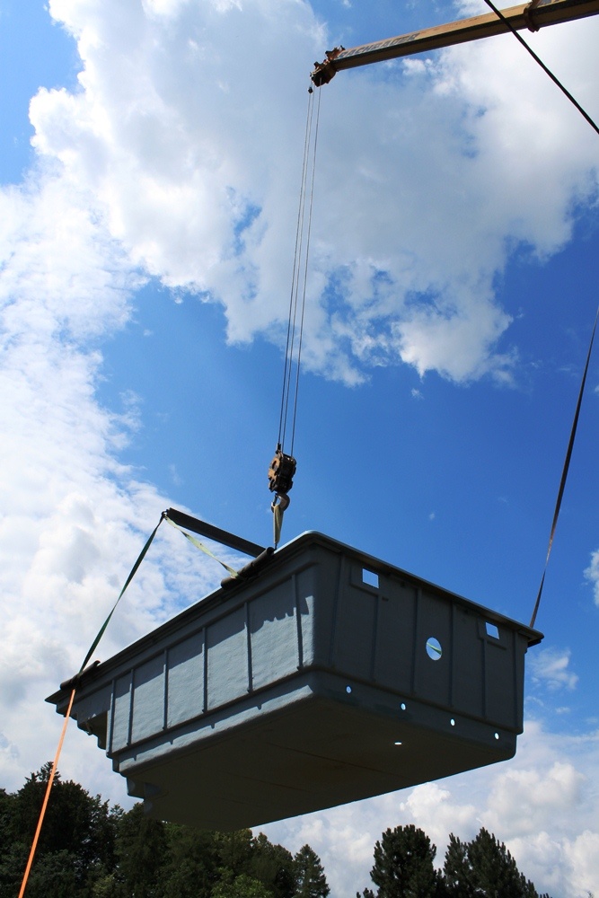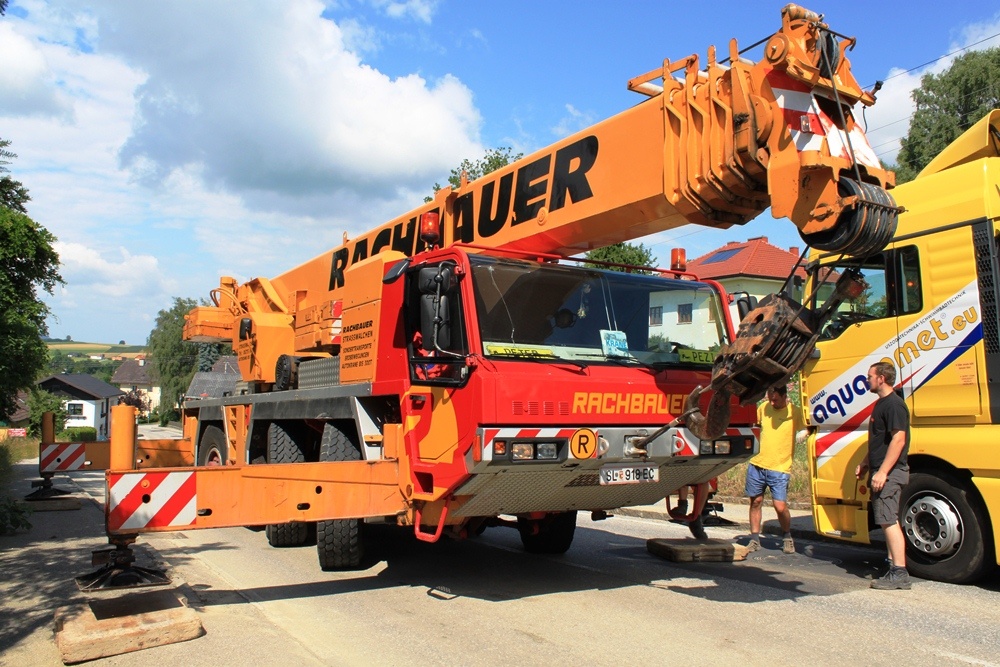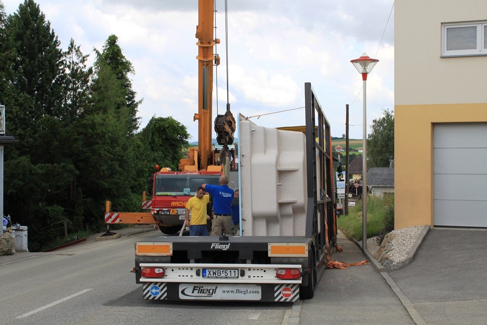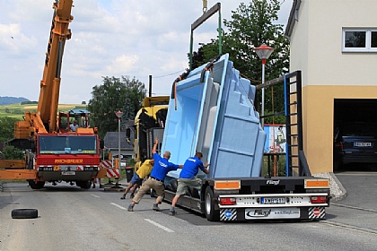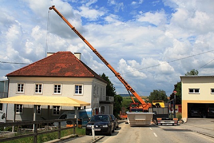 Bei schwierigeren Versetzungen wird ein größerer Kran benötigt.